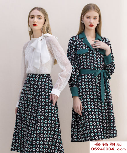 时髦又新颖的绿心可可豆型波点印花装修,在版型裁剪上凸显东方佳人纤细的腰身,别出心裁的印花让全体服饰新鲜又不乏时髦感,集合了典雅的欧美风格与东方女性的气质相融合,让人见之而难忘。