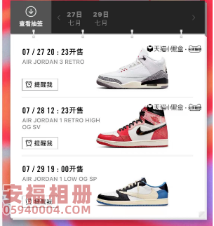 今天Jordan的天猫旗舰店更新了尖货日历有多双抢手鞋款将在本月底补货,包含了AJ3做旧白水泥、蜘蛛侠AJ1 2.0以及Nike SB AJ4等,均将通过小黑盒抽签方式出售。