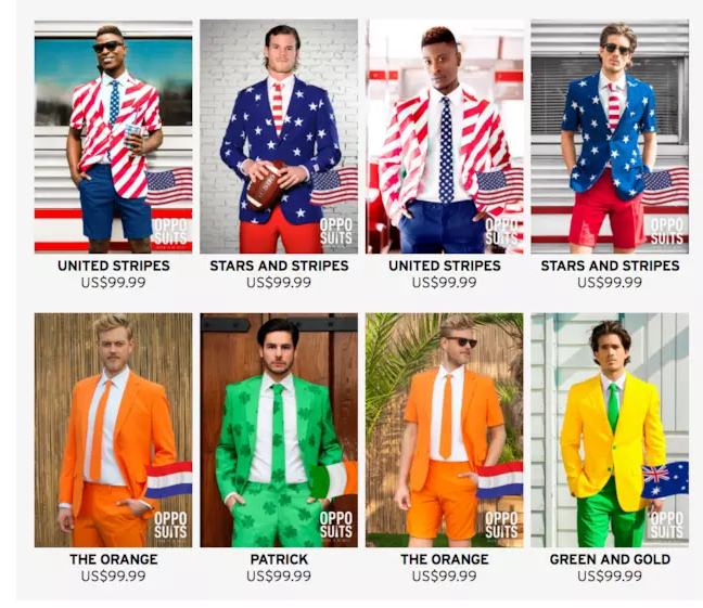 Opposuits 的有些国旗款套装,有些仍是拼色系列。