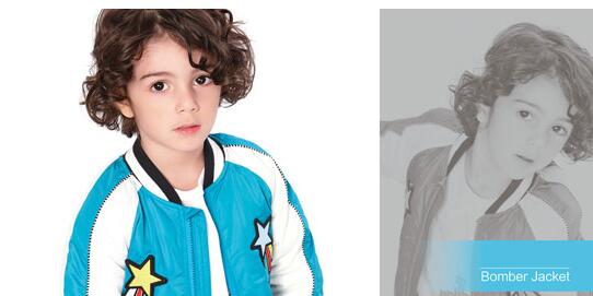或者是一款棒球服版型的休闲外套,蓝色元素时尚十足,胸前的小星星设计最是耀眼,十分方便的拉链设计和不过时宽松的款式,就算孩子长大一点了还是可以穿,爱给孩子乱买衣服的宝妈们可以考虑哦!