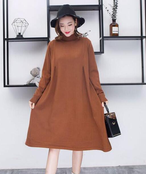 女人都希望自己有着魔鬼身材,而宽松的裙子可能是你平时不愿尝试的。“芝麻E柜”品牌这款高领连衣裙,宽松的版型非常休闲,并不会有孕妇装之感,配以今年流行的焦糖色,提上包包出街肯定不成问题!