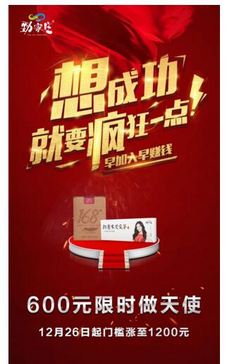活动1、600元做署理,六盒薏米茶和168素食餐混拿就可以取得两个产品天使授权,赠送三盒蜂蜜,参与百万抽奖时机。12.26日天使授权当即翻倍涨门槛!抓住时机!