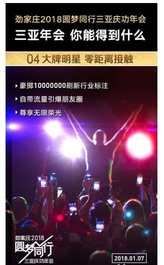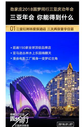 活动2,劲家庄圆梦同行三亚庆功年会,等你一起来。参与署理超值福利:1.只需8000取得劲家庄总代双授权,薏米茶和168素食餐随意混拿。