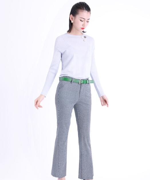 而且宽松的休闲长裤也十分有个性,纹路让人不再感到单调,绿色的皮带给整体带来了一丝明亮的色彩,而且也很好地划分了上下身比例,轻松凸显好身材。