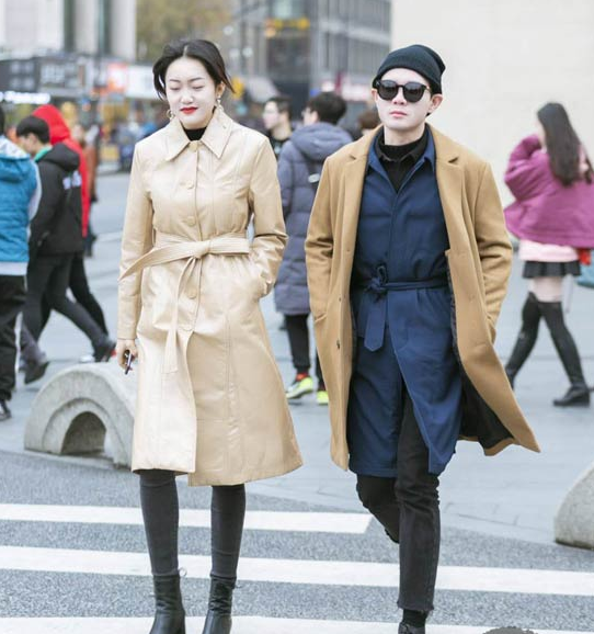 想要get韩式风格穿搭的情侣还能够向这对情侣偷师,运用到大衣、风衣进行调配,还有一些小技巧,譬如在相同的风格前提下,女生的大衣与男生的大衣颜色相呼应,这一点也是不失心计的时尚做法~