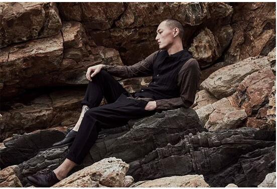 条纹亚麻马甲被小立领与活页下摆取舍出强烈层次感,与爱一同丰厚。做旧异形金属扣之间不等距,打破规矩的幽默感,不小心抖落成熟男孩的心爱一面。