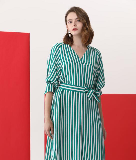 怎么把竖条纹调配得当,首先作为裙装穿着就是不错挑选,纵向的线条能够有用拉长腿部,整体摆放的条纹还融入了复古气质,演绎老练感的大人风再适宜不过!