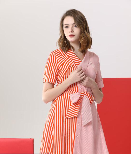 条纹的特色就是高雅中有利落,百搭却又不平凡,不只修身还不会穿错,想不出穿啥,一件条纹帮你搞定~如果忧虑穿条纹会显胖,拼接条纹无妨了解一下,它显瘦显高的功力但是一流的。