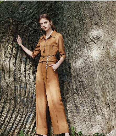 红凯贝尔虽是源自法国,但玩起英伦风起来,亦是不逊。通体的棕色,却显得十分时髦,高腰阔腿裤能更好的展现女人身材比例,腰部的链子腰带更是异乎寻常,与你曾经穿戴的衣服比较,整体气场更胜一筹。