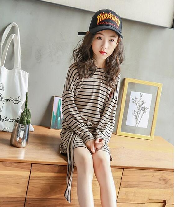 除了衬衫之外,百搭的T恤更为清新魅力。将T恤演变为裙装,T恤裙既休闲生机又不失甜美大方。中长款的样式与简练宽松的版型十分休闲舒适,衣身处条纹的勾勒更彰显经典与小新鲜之感。无需其他因素的点缀,只需搭配着中筒袜与小白鞋,全体就满足时尚吸晴了,很好的将孩子的生机俏皮突显出。一起,T恤样式无论是内搭还是外穿,都是非常不错的挑选。