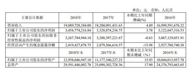 依据财报,2018年海澜之家完成营收190.90亿元,同比增加4.89%;归属于上市公司股东的净利润为34.55亿元,同比增加3.78%。