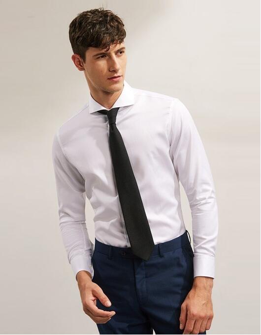 在衬衣上搭一条纯黑色的领带,显得精致又干练。适合职场上的型男,整整意义的衬衣没有意思褶皱,带给人精神,干净的感觉,搭配一条蓝色西装裤,一双皮鞋,整体的搭配男人味尽显无疑,吸引小姑娘的目光妥妥的。