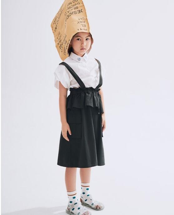 比较复古小清新的一款背带裙,穿在身上俏皮可爱。裙身两侧的大口袋设计,除了萌点担当,还很实用哦~。飘逸的裙摆,增加整体的层次感,搭配一件白色短袖衬衫,整体的搭配清新、甜美、可爱、活泼体现的淋漓尽致。穿在身上也是一个俏皮可爱的小公主。