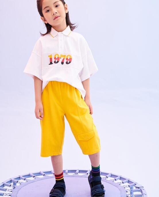 带有运动风格的POLO衫,自然的令人想起户外运动游戏。宽松的落肩剪裁,玩耍时更舒适灵敏,大大的拼色数字装饰,造型款式更具时髦感。下身搭配一条明黄色的短裤,整体的搭配活泼可爱,一副天真烂漫的模样,讨人欢喜。