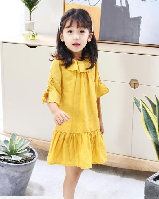 要说夏天穿什么最为方便,那非常连衣裙莫属。上图这件女童黄色系的连衣裙,采用荷叶边的翻领设计,带来满满甜美可爱的气息,而且袖子上交叉绑带感的袖口,丰富了整体的视觉感,配合宽松的裙身以及荷叶边的裙摆,穿着起来包容性极强,也能够轻松的帮你遮住臀部以及大腿上的肉肉,搭配上一双黑白撞色的波点凉鞋,时尚感爆棚。