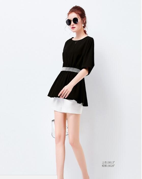 非常时尚好看的 这件 艾米黑色的收腰上衣,采用简约风的圆领以及五分袖设计,非常的简约大气,而且腰间银白色的条纹封腰设计,带来满满的视觉层次感,同时也让这件简约的黑色上衣变的更加有层次感,更加的时尚迷人。搭配上一条纯白色的西装热裤,一双白色的尖头高跟鞋,带来满满轻熟优雅的气质。