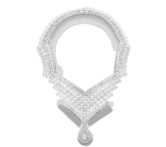 项链采用白金铸造,镶嵌2.68克拉F色IF级梨形钻石、长方钻与透明水晶,铺镶钻石。展现多重佩戴艺术。项链往往都是提升华丽的气质,这款项链赋予了女性魅力。