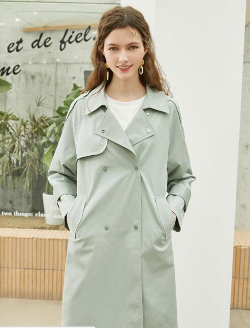 看着这一件浅绿色风衣,我的脑海中浮现出一句诗,云想衣裳花想容,春风拂槛露华浓。一件纯色风衣,再搭配一件白色体恤,简约时尚的气息扑面而来。只有两种色调和平平凡凡的设计,没有花里胡哨的东西,但是我的视觉却受到了强烈的冲击。难道这就是传说中的大道至简?哦,原来我是个瞎子啊!那没事了。