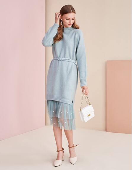 毛衣是秋季必备的内搭,这款毛衣颜色上采用的是温柔清新的绿色,圆领的设计能够很好的展示柔美的颈部线条,长款的毛衣非常显气质又很适合搭配。这款毛衣腰带的设计能够很好的拉长整体的身材比例,显高又显瘦。这款毛衣衣尾的拼接网纱设计增加了几分小甜美感。这样一款清新又气质的内衣赶紧准备起来吧!