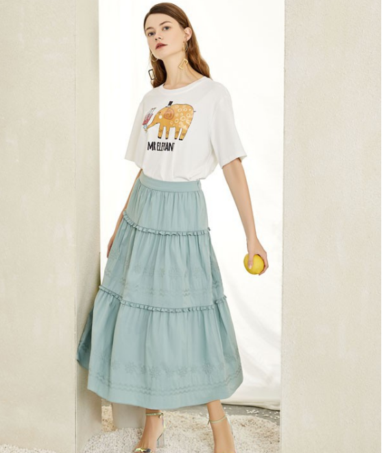 薄荷绿的蛋糕裙将夏日的甜美都展现出来了,温柔明亮的绿色仿佛自带消暑清凉感,像是定制的薄荷味奶油蛋糕,清新怡人的感觉似乎又有着奶油一般的甜味,在不经意间就抓住你的心情,长长的半身裙搭配一件休闲T恤清丽的温柔看着很舒适,裙摆上双层花边,像海盐薄荷一样甜而不腻,面料选择舒适透气的那种,夏天穿衣服最重要的就是清爽舒适。