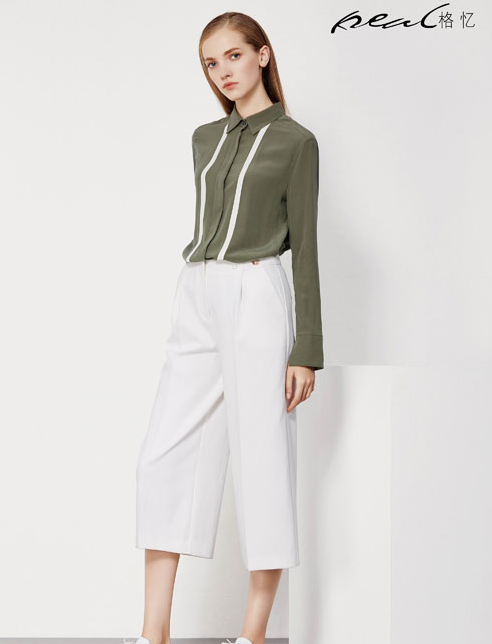 衬衫是时尚圈永不败的摩登人气单品之一,无论想要打造什么样的风格,它都可以轻松驾驭。“格忆”墨绿雪纺衬衫,不仅展现出高贵优雅气质,而且在白色条纹的衬托下,清新大方。再配以白色七分阔脚裤,凸显整体的简约时尚美感。