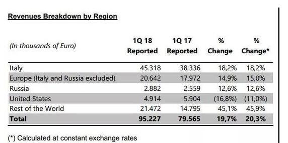 关于集团第一季度的成绩体现,执行主席Massimo Ferretti表明期内一切部分均录得双位数增加,显示出一切品牌的风格继续遭到商场欢迎,以及集团行之有效的出资和办理战略。