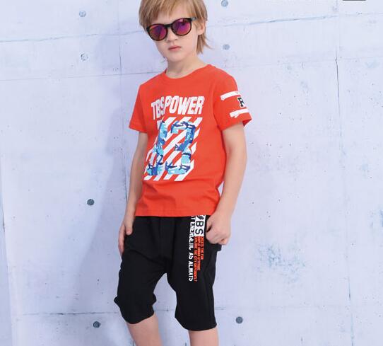 小孩子就是熊,所以不想给他穿白色的衣服,不然一会儿就脏兮兮没法洗,这件橙色字母印花的小小T恤就很适合了,棉质,吸汗,宽松,搭上一黑色宽松运动风格的小短裤,整体形象十分的耐看,时尚,大气