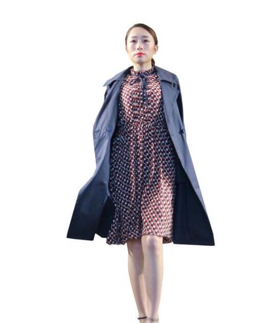 这款灰黑色的呢大衣,优雅飘絮的大气廓形,精美细腻的亲肤面料,形象地展露了女性温柔的内心。洋气的大翻领棱角分明,光泽的纽扣高档细致。内搭一件彩色的斑点连衣裙,衣身轻盈,不乏美丽动人的色觉感受。