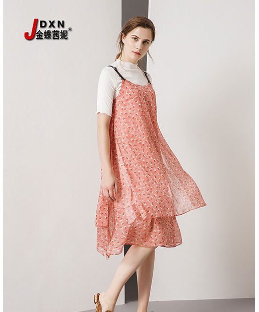 碎花是一种充满气氛的时尚单品,不管此时的你是开心,或者悲伤,碎花元素总能瞬间融入情景,给人无限想象空间!金蝶茜妮品牌粉色吊带碎花连衣裙,采用优质的雪纺面料,很自然优雅,亲肤舒适,不仅具有飘逸感,另外还能带来丝丝清凉!