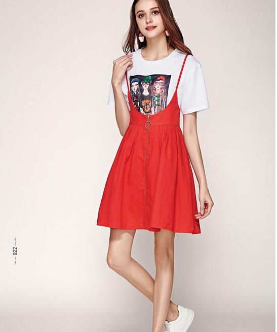 约会时不管走到哪里肯定都是要吸睛十足的,那想要穿的吸睛没有一袭靓丽的颜色怎么行?一款“楚阁”女装的背带裙,上身是一件简约的白色T恤,下身是一条鲜艳的红色背带裙装,简约又简洁的搭配配上明亮热情的红色,走到那都能占领被人的视线!