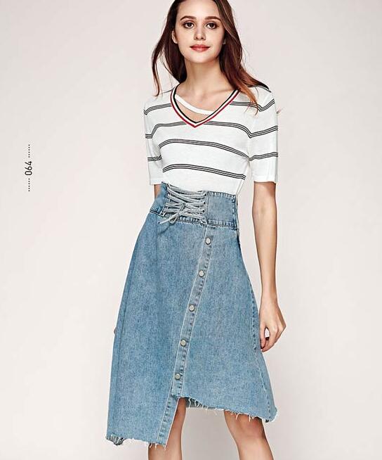 简单实穿的条纹衫,是夏日里必不可少的单品,也是女孩子的衣橱必备。正是因为其简单的风格,才更加的阳光青春!白色青春,蓝色清爽,这才是属于青春的颜色。牛仔半身裙的不规则设计,别有一番趣味。