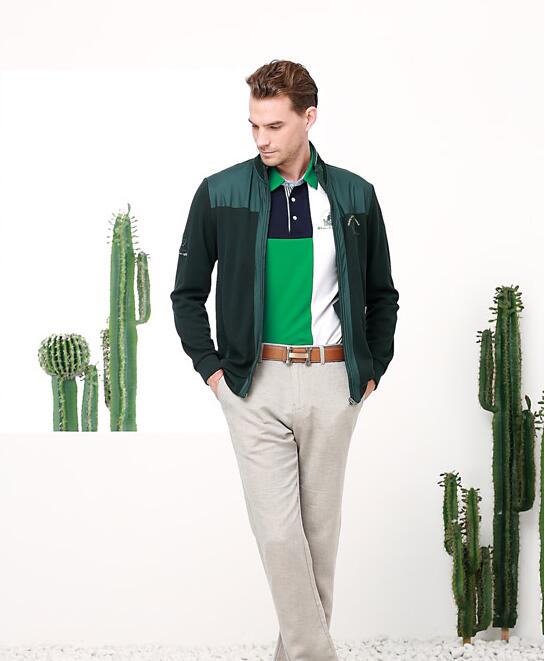 穿上这款夹克,举手投足间展现你的非凡魅力。黑色给人以低调的霸气感觉,墨绿色撞色设计,小细节都展现出你的穿衣品味。内搭撞色POLO衫,秋天想扮酷有富绅怎么穿都很百搭帅气。