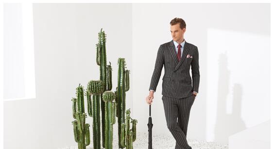 这是一套黑色的条纹纹西装,今年条纹元素特别的火热,上身是时尚感和成熟感兼具,非常的耐看。搭配一条颜色较亮眼的领带就可以中和西装的严肃感,营造一种高知儒雅感。
