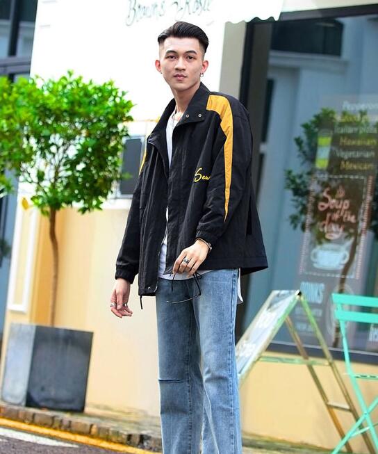带着原宿风感觉的外套,个性十足,真的很吸引人哦!穿上街头就能有回头率的,张扬的黄黑撞色设计,展现了潮男的个性,显得十分的青春有魅力。