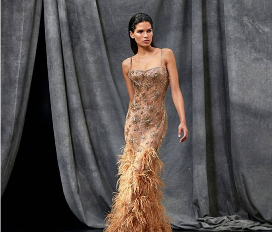 这一款是由创作总监Paul Surridge设计的高级定制成衣系列,精致的鸵鸟羽毛点缀在细肩带晚礼服上,刺绣图案美轮美奂,犹如一条美人鱼在现实中捕捉梦幻与美丽,这样的你简直美轮美奂,让人简直无法移开视线~~