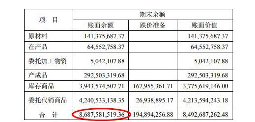 海澜之家2017年年报显现,到2017年年末,海澜之家存货账面余额86.88亿元,计提贬价预备1.95亿元,贬价计提占比为2.24%。