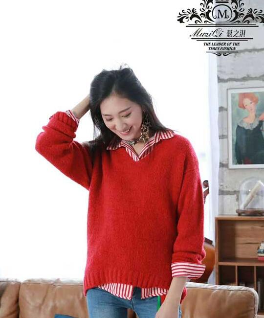红色的针织衫有着奶奶风,宽大还有点毛毛的粗粒感。V领内搭上一件竖条纹的红色衬衫,紧身的牛仔裤让纤细的腿部的线条更加好看咯~整体简单随意,休闲自在,是日常的必备款哦~穿着舒服又减龄,这样的衣服单品特别容易跟闺蜜和男朋友搭在一起,是讨喜的着装。