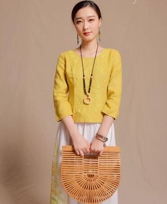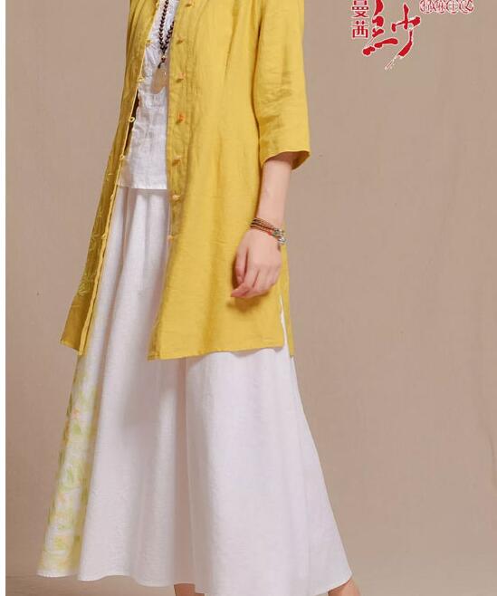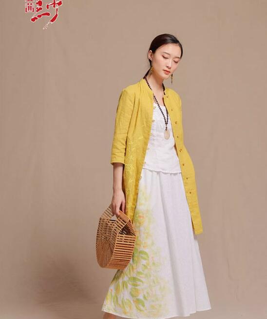 仿手工刺绣中长开衫,内搭精致绣花吊带,下装搭配白色半截裙,油画手绘工艺,独特不撞衫,兼具了文艺与时尚,淡雅的黄色沁人心脾,让人眼前一亮。