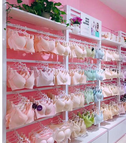 看了店铺门面的设计以后店铺内的风采也是要一睹为快的。在店铺的店内内衣都整齐的挂在货架上,并且还把颜色做了分类,让客户的视觉体验大大的提高了不少呢~