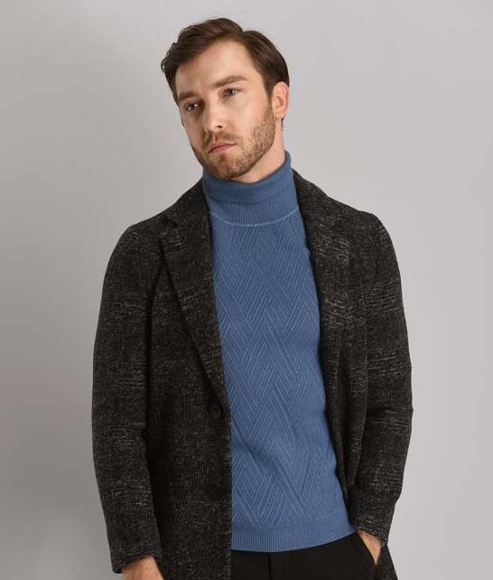 毛呢大衣加高领针织衫的搭配,不仅是女人增加气质的秘密武器,对于男人来说也是如此。内搭的高领针织衫颜色虽然吸睛,但是由于带着点灰调的原因,不会显得稚嫩,反而更添绅士魅力。