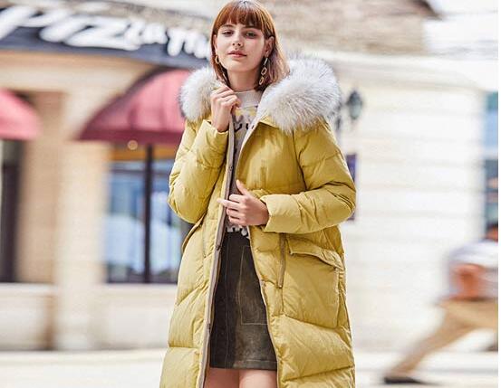 棉服想要穿好,颜色是一大重点。不要只知道黑啊,白啊这些暗淡沉闷的颜色,今年流行亮色系,比如春美多这件姜黄色的羽绒服就是今冬的一大流行色,穿上非常显肤色。