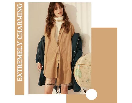 长款衬衫为裙立显妩媚,冬日里也能大玩下半身失踪,蕴含温婉的长棉服与之搭配,呈现出一种漫不经心的独特魅力。