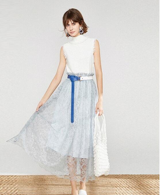 白色无袖上衣搭配浅蓝色半身裙,整体更为甜美大方。中领的领口设计与无袖款式的存在,极为个性吸晴。衣身处羽毛因素的点缀,更给整体增色不少。搭配着浅蓝色半身裙,白蓝相间的搭配让人倍感清爽甜美。高腰的花苞设计,又巧妙的将身材比例拉长,突显高挑范。轻薄纱层的勾勒更为甜美柔情。轻薄的蕾丝花边勾勒,又给整体增色不少。只需搭配着小白鞋,就足以将时尚感彰显出了。