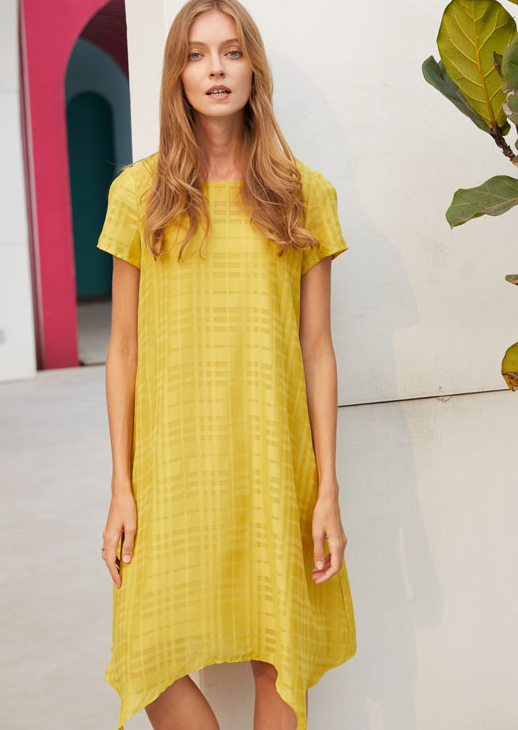 这款奶油黄款式连衣裙,气质之中满满的可爱的味道,连衣裙上的条纹小设计,丰满了整体的时尚。裙尾的不规则的设计,加上奶油黄的颜色搭配,让人整体陷入甜蜜蜜的风格里。