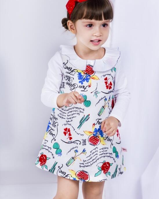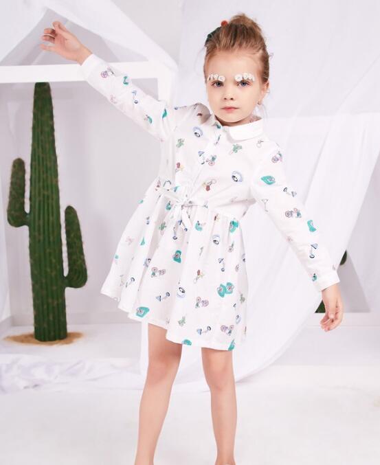 很洋气甜美的连衣裙,时尚涂鸦印花设计,看起来时髦好看,荷叶边翻领的设计,彰显出孩子的可爱,宽松的裙摆凸显小公主的浪漫气质,可爱俏皮,宽松的版型,不会感觉不适感,穿在身上舒适简约,搭配一双小白鞋,整体的造型简约休闲,搭配一件外套,在早秋的时候真的很适合穿哦。