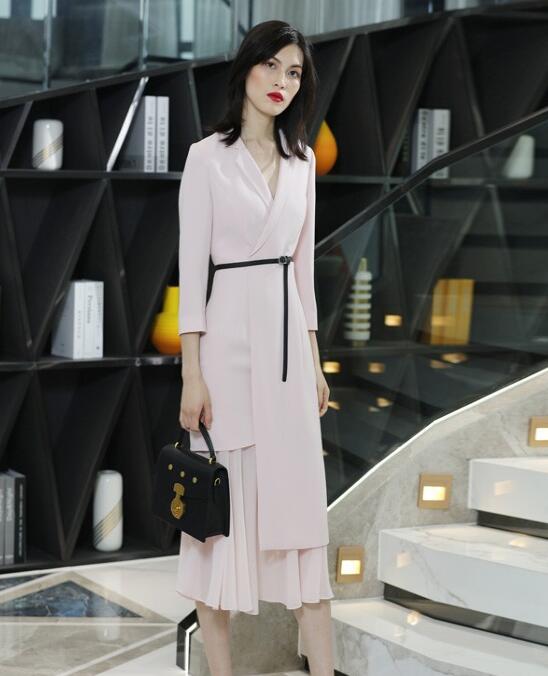 这款粉红色收腰连衣裙职业套装非常养眼,清新淡雅的粉色套装裙,穿起来很有气场,还带着甜美粉嫩的少女心,舒适修身的裙腰配上时尚的腰带,修身显瘦显气质。下摆的不规则裙摆设计也是点睛之笔,为你增添不少女人味儿。中长的裙摆,刚刚好露出纤细的小腿,让身材看起来更加纤瘦,搭配粉色高跟鞋,整套上身优雅知性。平时上班或者下班后要去约个会啊,参加活动什么的都不用换装,很显优雅大气。