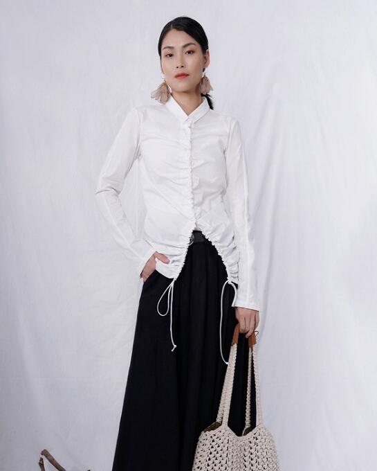 对于上班族来讲这款服饰真的很合适哦,白色衬衣干净利落,翻领的设计很是显气质,在秋季这样穿也不会觉得冷,衣摆处独特的设计彰显出设计师的用心,而且在职场生活中最常见的就是衬衣但是这款衬衣充满了时髦感,下身搭配一件黑色半身裙,黑白搭配是不是很是时髦,也很百搭, 搭配一双高跟鞋,整体的造型休闲又简约。