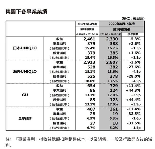 而优衣库海外市场第一季度收益为2,807亿日元(同比下降3.6%),经营溢利为378亿日元(同比下降28.0%),录得收益、溢利双双下降。其中,南韩与香港业务均录得收益大幅下降及经营亏损,但剔除此两地后的海外UNIQLO业绩则录得收益、溢利双增长。