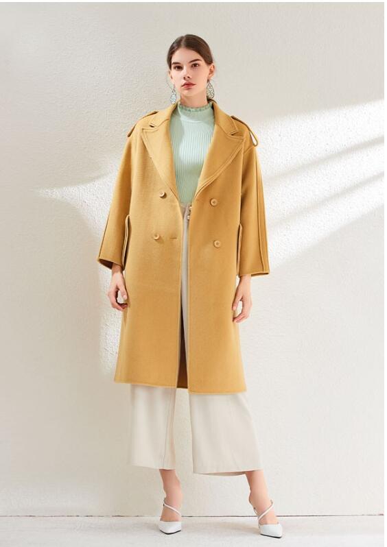 莆田安福家园女装这件黄色的过膝长款大衣,颜色非常的衬肤色,为萧瑟的冬日里增添了几分明媚感,并且挺阔的双排扣设计,韩系感满分。搭配上嫩绿色的高领打底衫+纯白色的高腰毛呢阔腿裤,这种穿搭藏肉还显瘦,搭配高跟靴还能拉长身材比例!