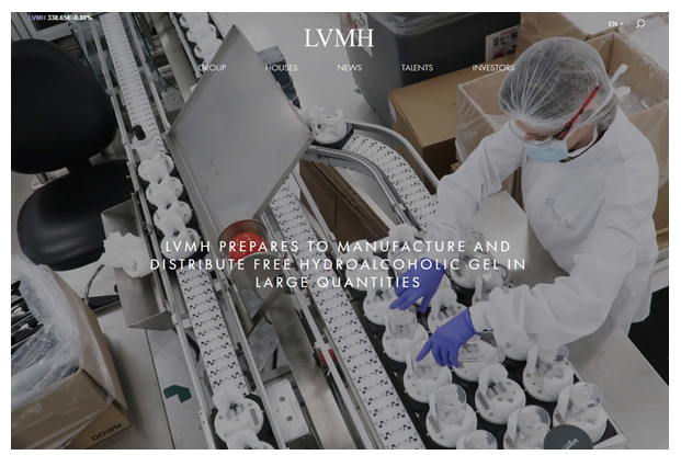 不久前,为帮助法国政府解决由于新冠病毒疫情蔓延导致的洗手液短缺问题,LVMH 宣布将旗下品牌 Dior(迪奥)、Givenchy(纪梵希)、Guerlain(娇兰)的美妆产品及香水生产线暂时改为免洗洗手液生产线,首批洗手液已于3月19日正式交付。